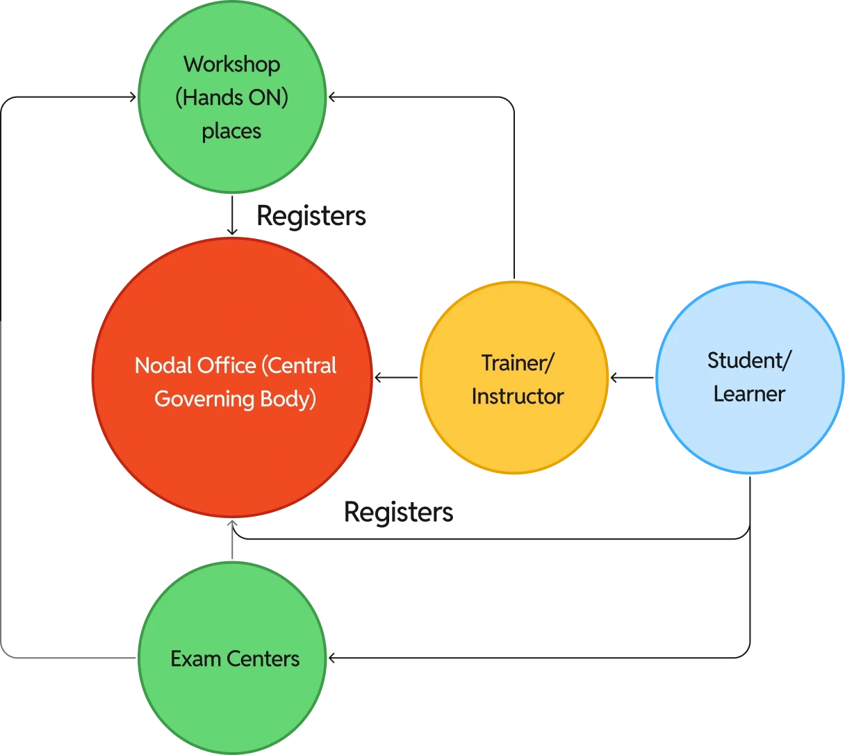 schools, colleges, shops, companies and training institutes to provide the infrastructure for workshops and exam centers for evaluation (post certified inspection of the infrastructure)